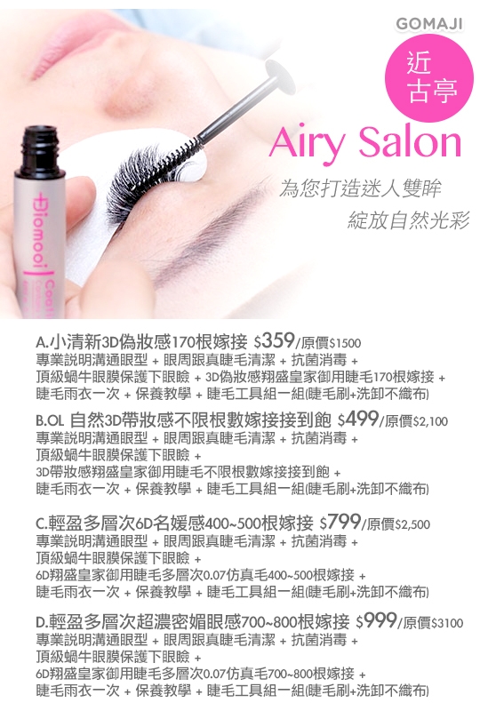 【Airy Salon】為您打造迷人雙眸,綻放自然光彩!根根分明的捲翹睫毛,素顏也能超有神!專業美睫產品、純熟技巧、細心態度,給您最高品質體驗!